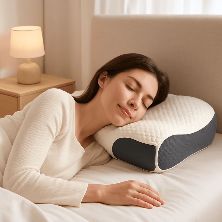 L'oreiller ergonomique CervicalComfort™ est conçu avec une attention particulière aux détails anatomiques. Sa forme spéciale maintient votre tête dans une position naturelle, permettant à vos muscles de se détendre complètement pendant votre sommeil.